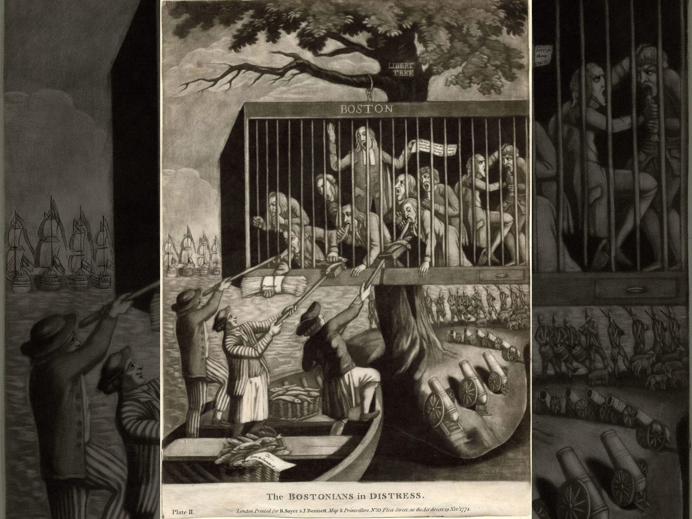 Photo available at Wikipedia — The Bostonians in Distress mezzotint 1774.jpg